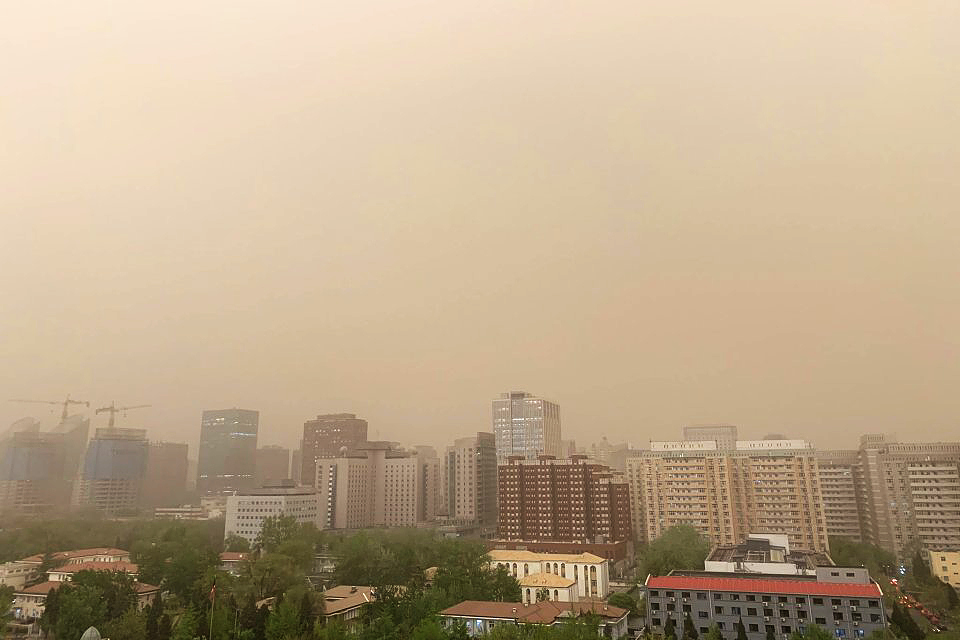 Tuto středu přes Mongolsko přešla relativně hluboká tlaková níže. A tak se prakticky v celém Mongolsku přechodně rozfoukal vítr, který dosahoval v nárazech rychlosti 80 až 100 km/h, ojediněle ještě vyšší. V poušti Gobi vyvolal velkou písečnou bouři, která brzy dorazila do sousední Číny. Oblak pouštního písku a prachu pohltil mimo jiné čínské hlavní město – potřetí za posledních pět týdnů. Podobně jako v předchozích dvou písečných bouřích, i tentokrát v Pekingu vítr vanul rychlostí přes 60 km/h (v nárazech).