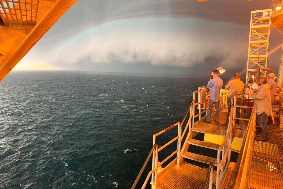 ČELO BOUŘE NAD MEXICKÝM ZÁLIVEM (ASI 110 KM JIŽNĚ OD POBŘEŽÍ LOUISIANY) ANEB KDO BY CHTĚL MÍT TAKOVÝ VÝHLED NA OTEVŘENÉM MOŘI? | ZDROJ: LIVE STORM CHASERS