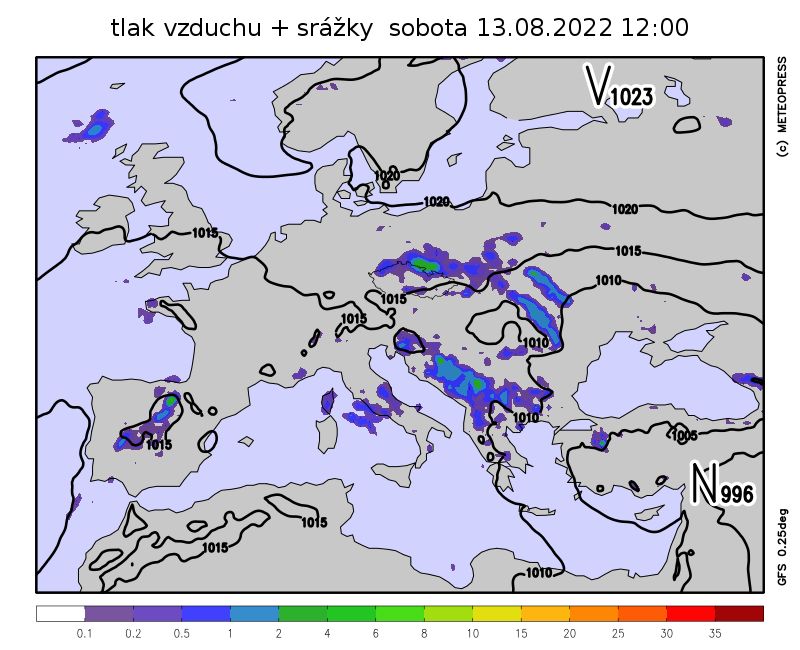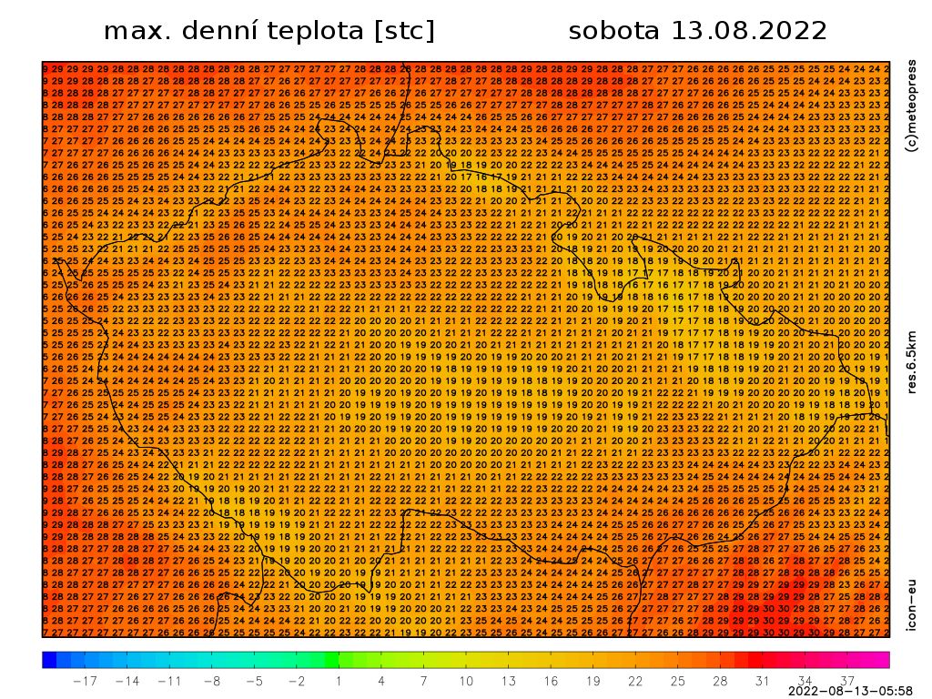 V sobotu oproti pátku dále přibude oblačnosti a srážek. Ty očekáváme na většině území. Na návětří hor na severu a severovýchodě pak může jít i o trvalejší déšť. Teploty zůstanou při dešti jen slabě nad 20 °C, jinak ale naměříme i přes 25 °C.