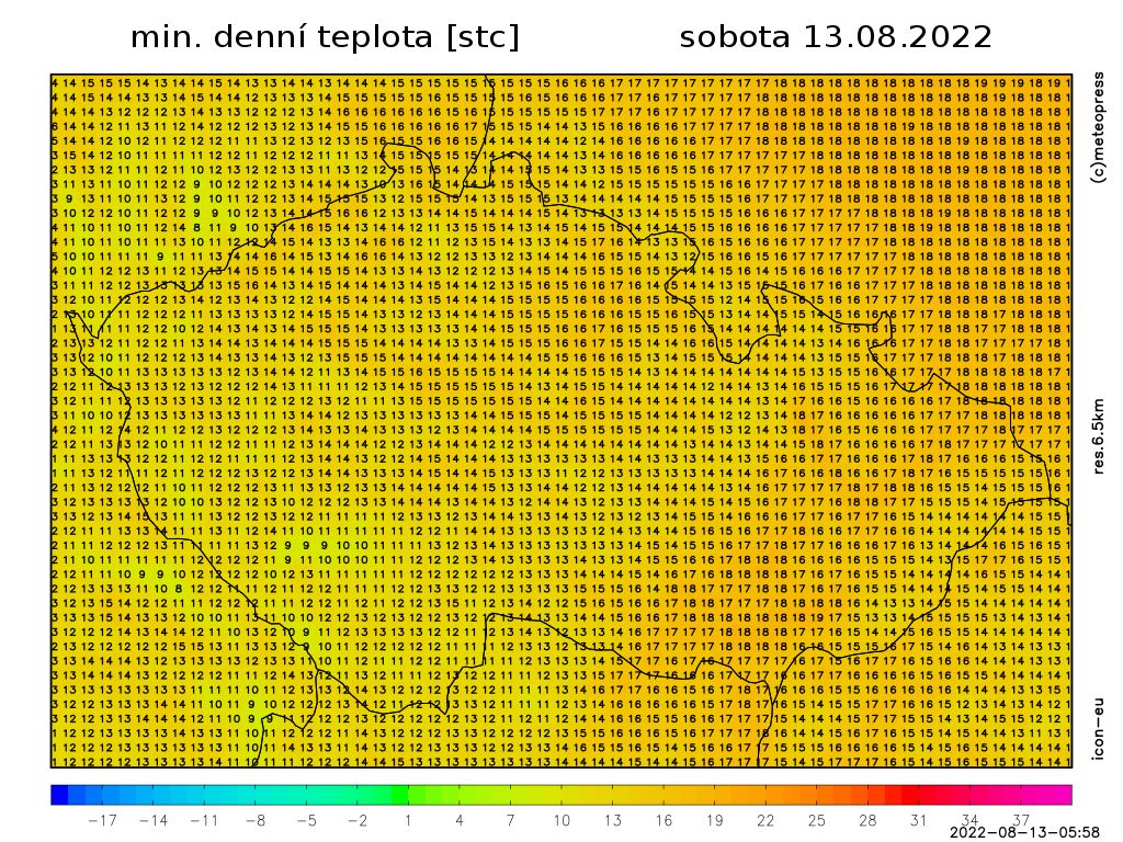 Bude polojasno až oblačno, od severovýchodu až zataženo. Na většině území déšť nebo přeháňky, ojediněle bouřky. Na jihozápadě srážky místy. Ranní teploty klesnou na 17 až 12 °C, na jihozápadě jen na 10 °C.