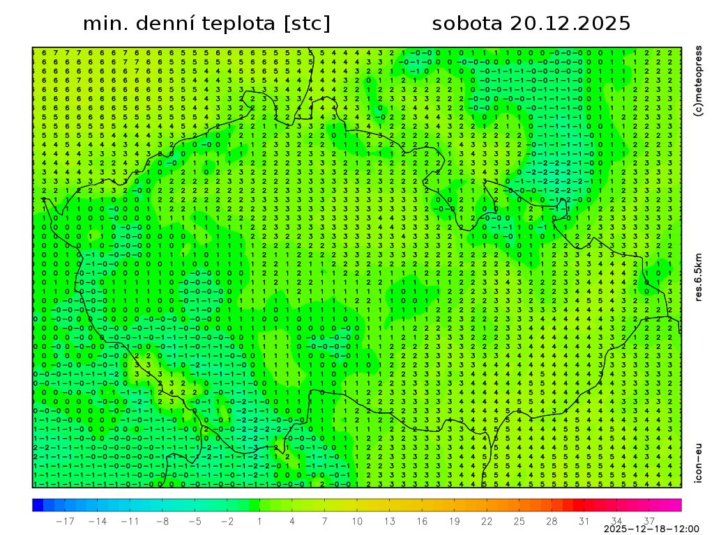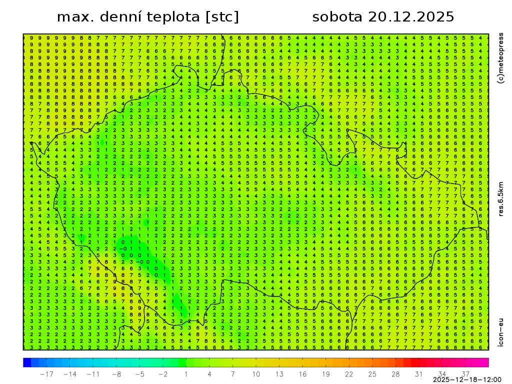 Nejvyšší denní teploty vystoupí na 0 až 4 °C, při zmenšené oblačnosti až na 8 °C.