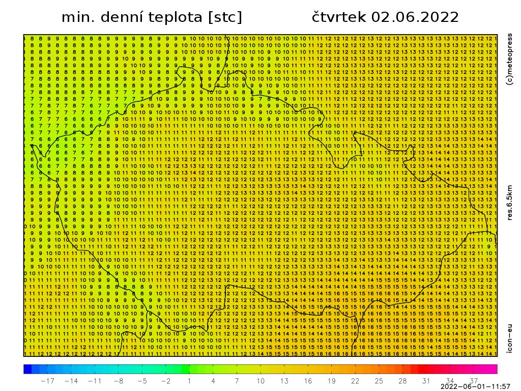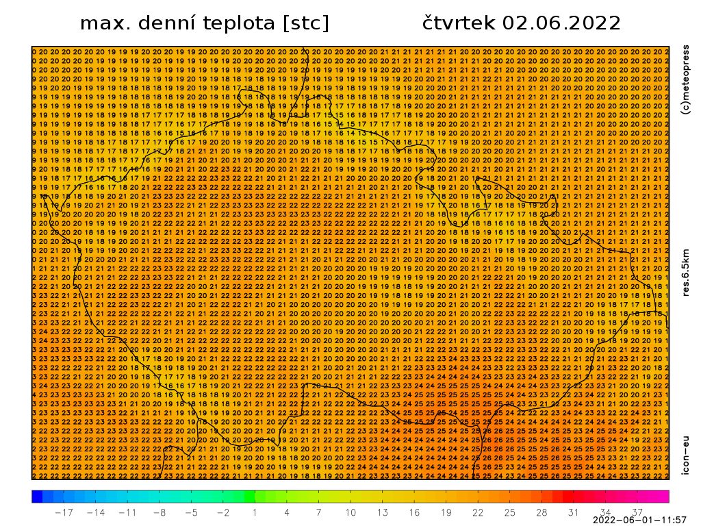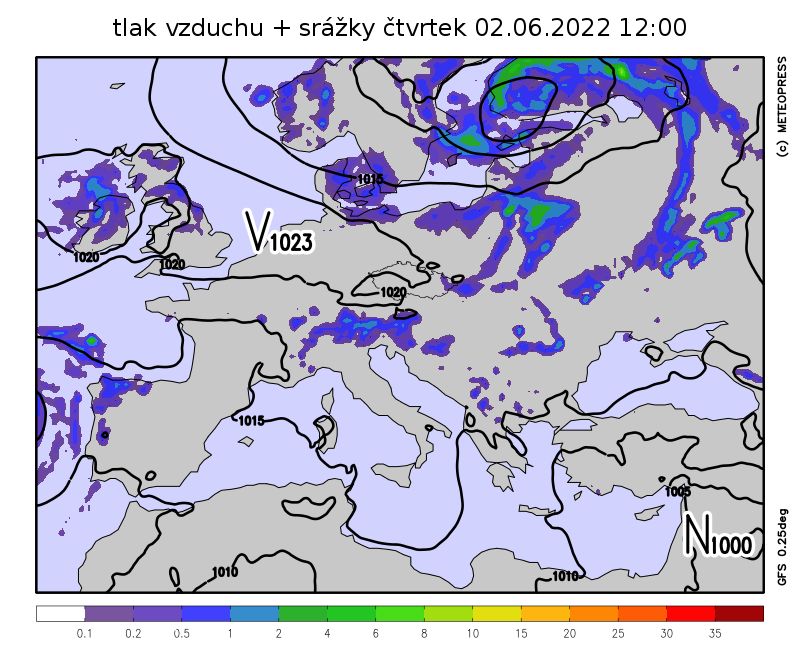 Frontální rozhraní bude nad střední Evropou oddělovat studený vzduch na severu od teplejšího vzduchu na jihu. Od západu bude do střední Evropy zasahovat i nevýrazný výběžek vyššího tlaku vzduchu.