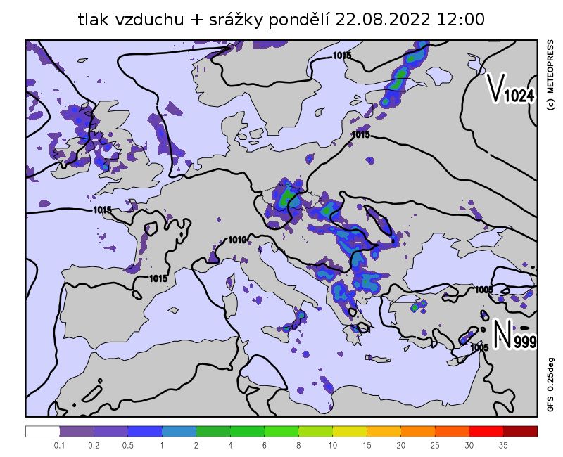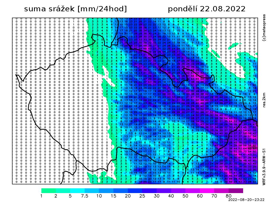 Pondělní počasí bude ovlivňovat zvlněné frontální rozhraní na východě. Očekáváme od východu postupující srážky, které můžou být místy i vydatné s úhrnem až 50 mm.
