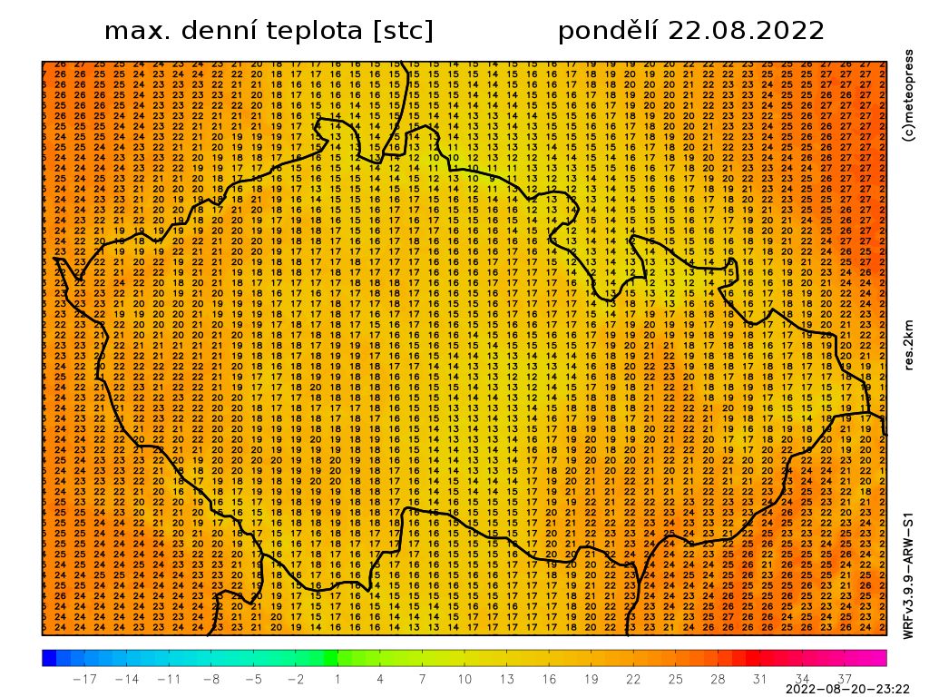 Nejvyšší denní teploty dosáhnou 13 až 18 °C, na jihovýchodě a západě až 22 °C. Bude foukat mírný až čerstvý severní vítr, v bouřkách může přechodně zesílit.