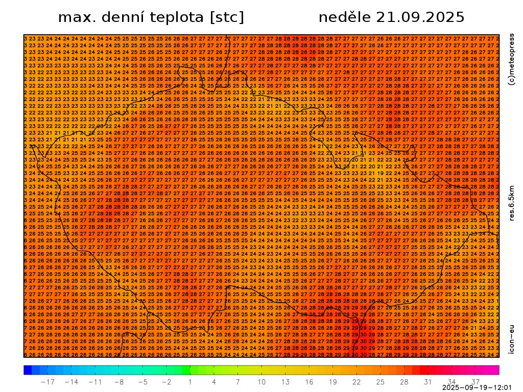 Nejvyšší denní teploty 24 až 29 °C. Teplota v 1000 m na horách kolem 21 °C. Foukat bude mírný jihovýchodní vítr.