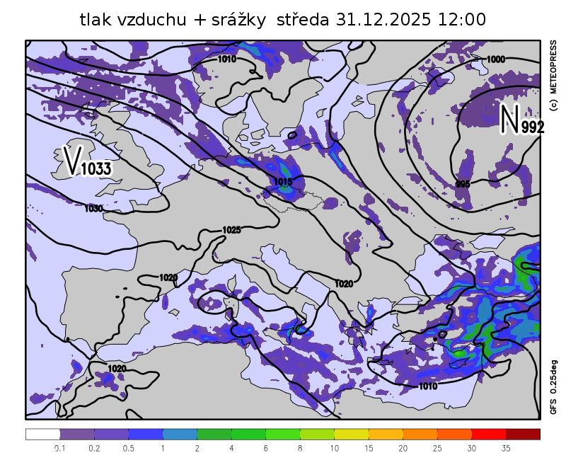 Počasí ve střední Evropě ovlivní frontální systém spojený s tlakovou níží přesouvající se od severozápadu přes Polsko.