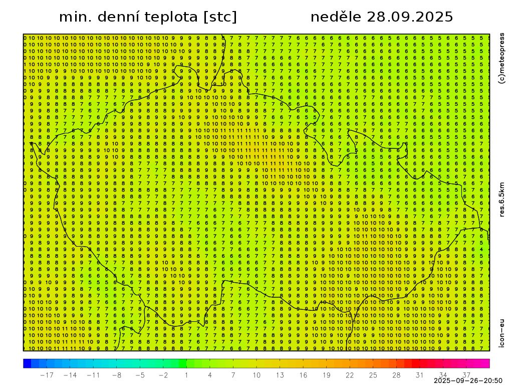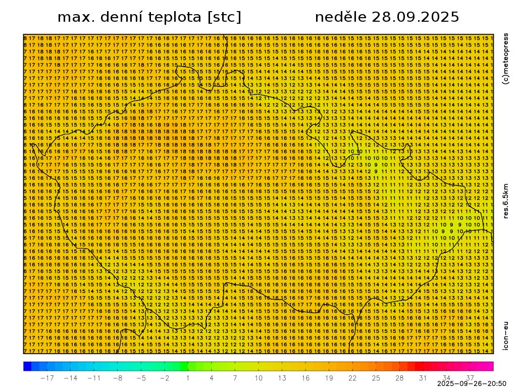 Nejvyšší denní teploty vystoupí na 13 až 18 °C. Teplota v 1000 m na horách kolem 9 °C. Foukat bude slabý až mírný severovýchodní vítr.