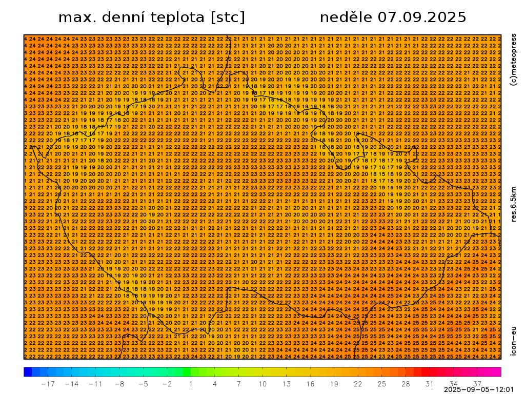 Nejvyšší denní teploty vystoupí na 20 až 25 °C. Teplota v 1000 m na horách bude kolem 16 °C. Foukat bude slabý vítr východních směrů.