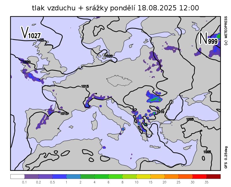 Počasí ve střední Evropě ovlivní hřeben vyššího tlaku vzduchu od západu.