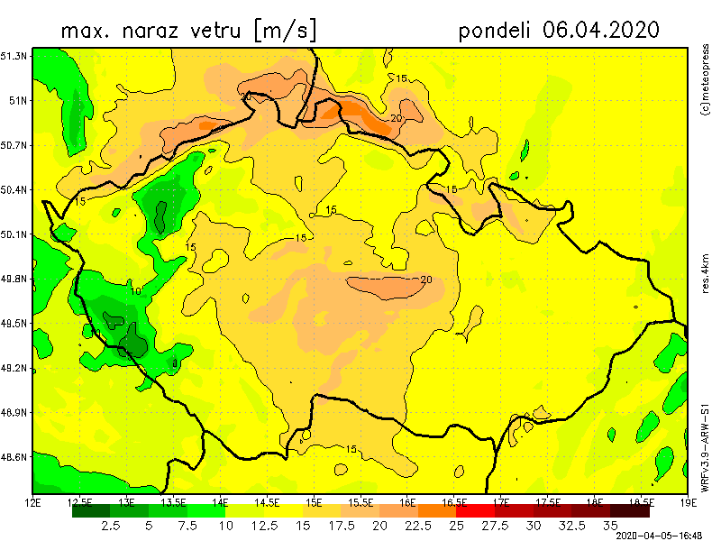 Bude foukat mírný až čerstvý vítr, jehož nárazy se místy budou pohybovat až přes 70 km/h. Nejvíce foukat bude na Českomoravské vrchovině a na severu a severozápadě Čech.