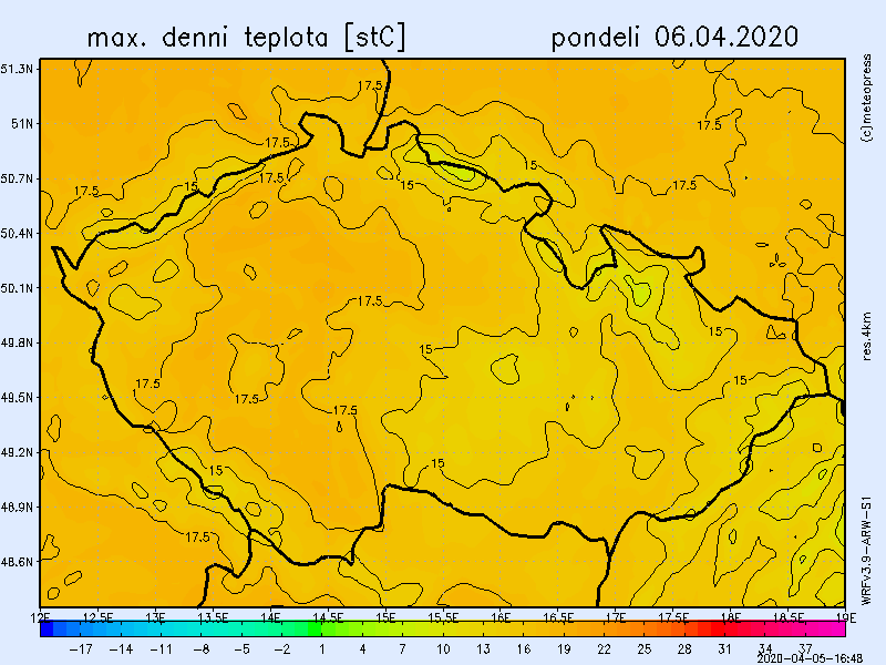 I ve zbytku pracovního týdne bude obloha jasná až polojasná a neočekáváme proto zatím ani žádné srážky. Noční teploty se budou až do pátku pohybovat mezi 6 až 2 °C. Během dne pak očekáváme příjemné maximální maximální teploty na většině území mezi 16 a 20 °C