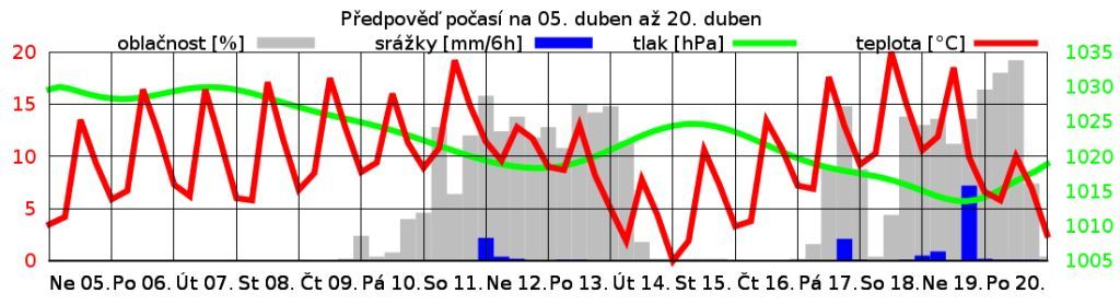 Noční teploty budou klesat na 6 až 2 °C, místy se ale mohou objevit přízemní mrazíky.