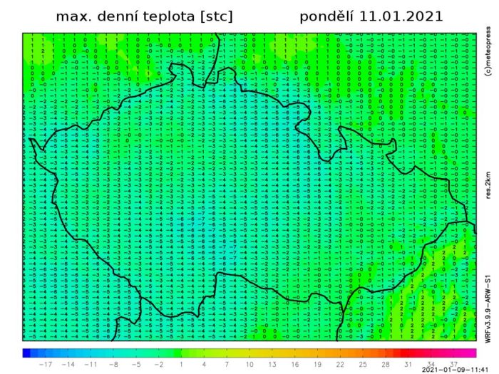 Nejvyšší teploty budou mezi -4 a 0 °C. Vát bude slabý proměnlivý nebo severozápadní vítr, postupně se bude měnit na mírný jihozápadní.