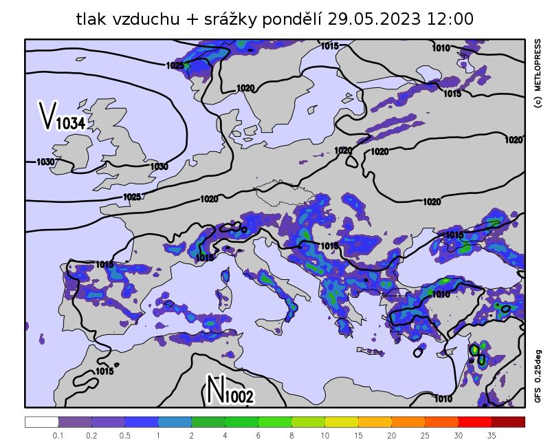Počasí ve střední Evropě bude i nadále ovlivňovat okraj tlakové výše nad Britskými ostrovy. Na obloze tedy bude málo oblačnosti, i když jí bude přeci jen více než v neděli. Na krajním jihovýchodě by se pak mohla objevit i ojedinělé přeháňka. Slunečné počasí nás bude doprovázet i ve zbytku týdne.