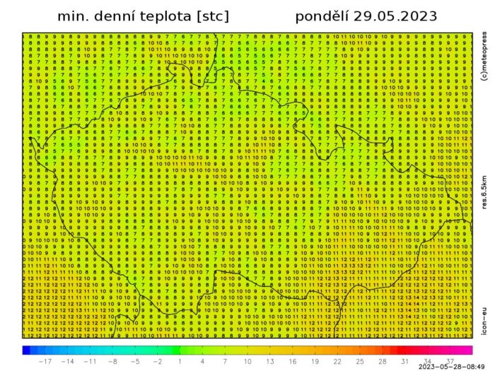 Bude jasno až polojasno, večer od severu až oblačno. Na jihovýchodě ojediněle možnost přeháňky. Ranní teploty 10 až 6 °C.