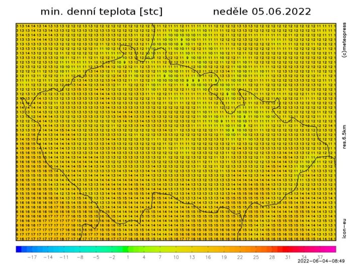 Bude jasno až polojasno, od západu k večeru přibývání oblačnosti a později na jihozápadě přeháňky nebo bouřky, i velmi silné. Ranní teploty klesnou na 15 až 10 °C.