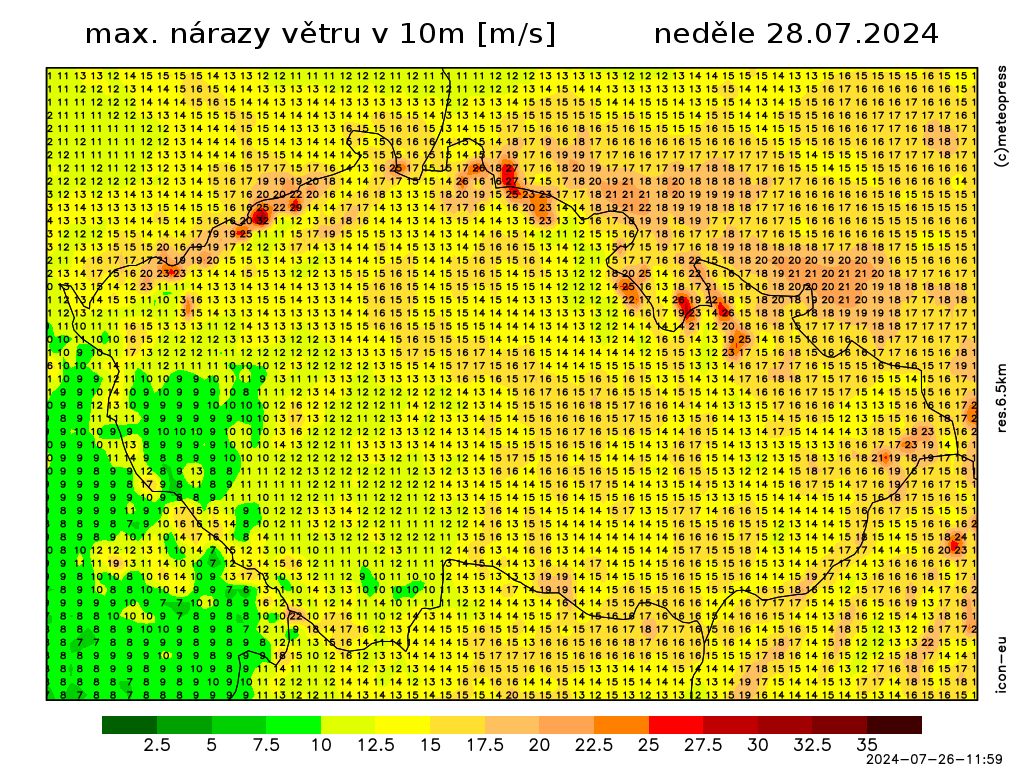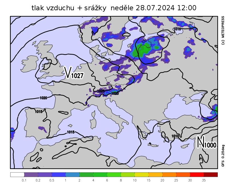 Bude oblačno až zataženo, na většině území déšť nebo přeháňky, ojediněle bouřky. Odpoledne od severozápadu polojasno a jen ojediněle přeháňky. Ranní teploty 21 až 16 °C.