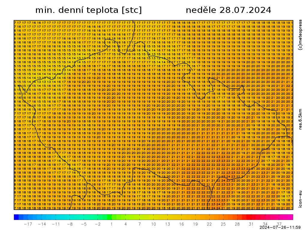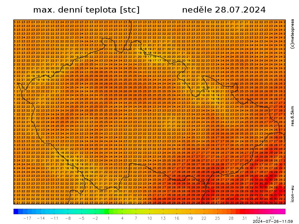 Nejvyšší denní teploty 22 až 27 °C, na jižní Moravě až 29 °C.