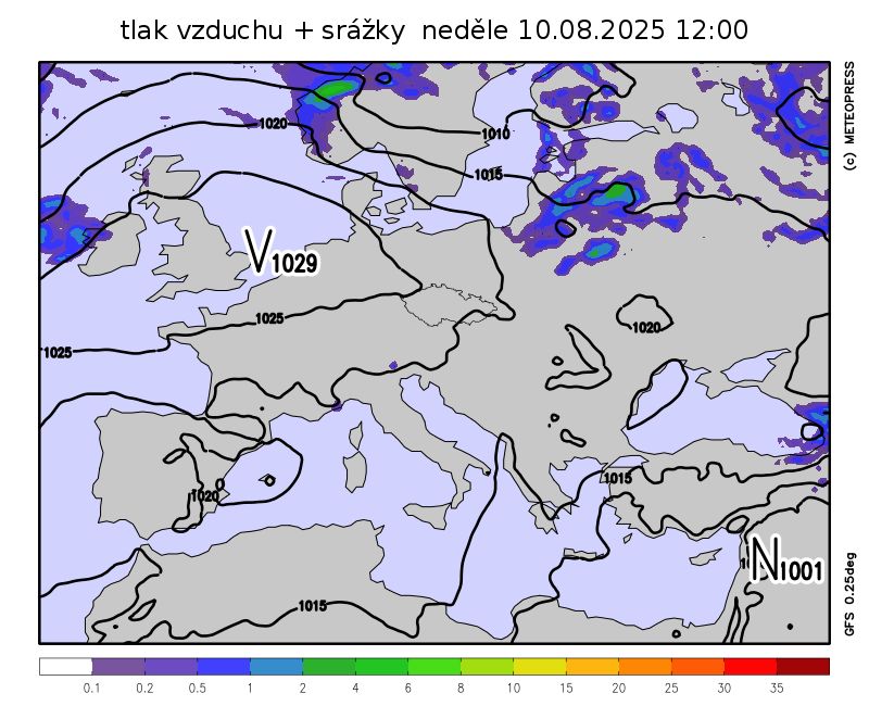 Počasí ve střední Evropě ovlivní oblast vysokého tlaku vzduchu.