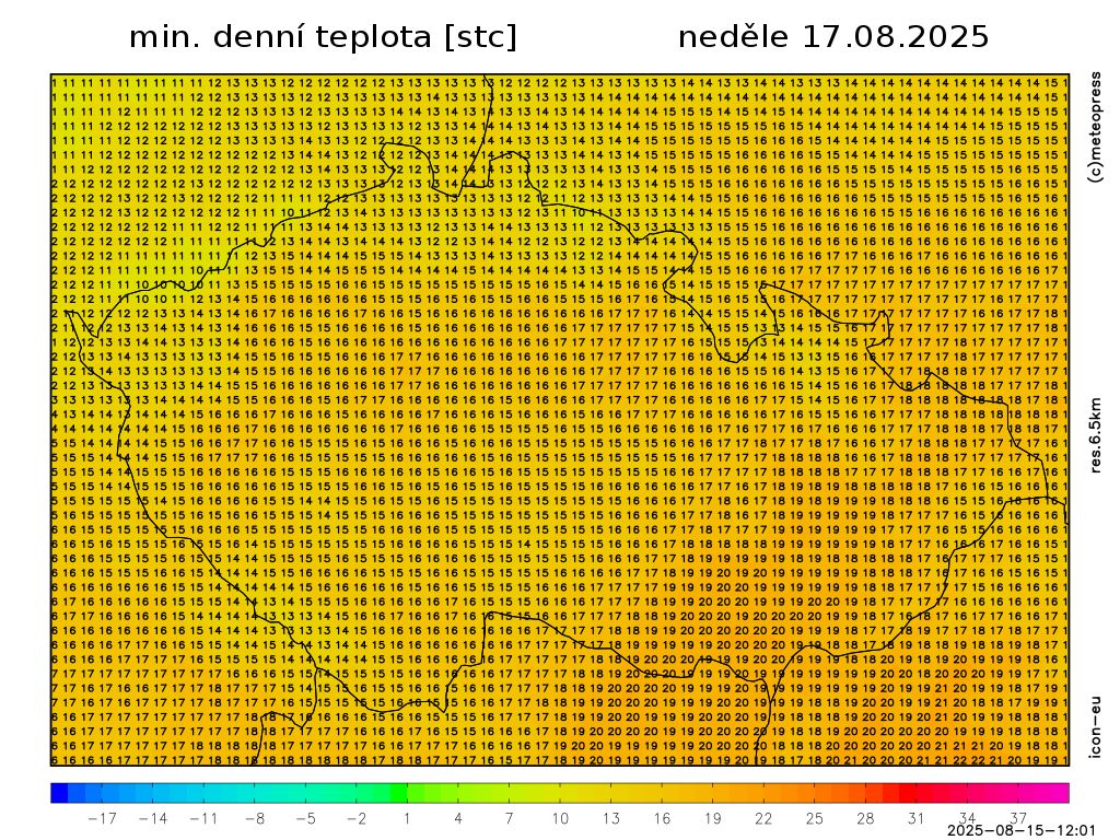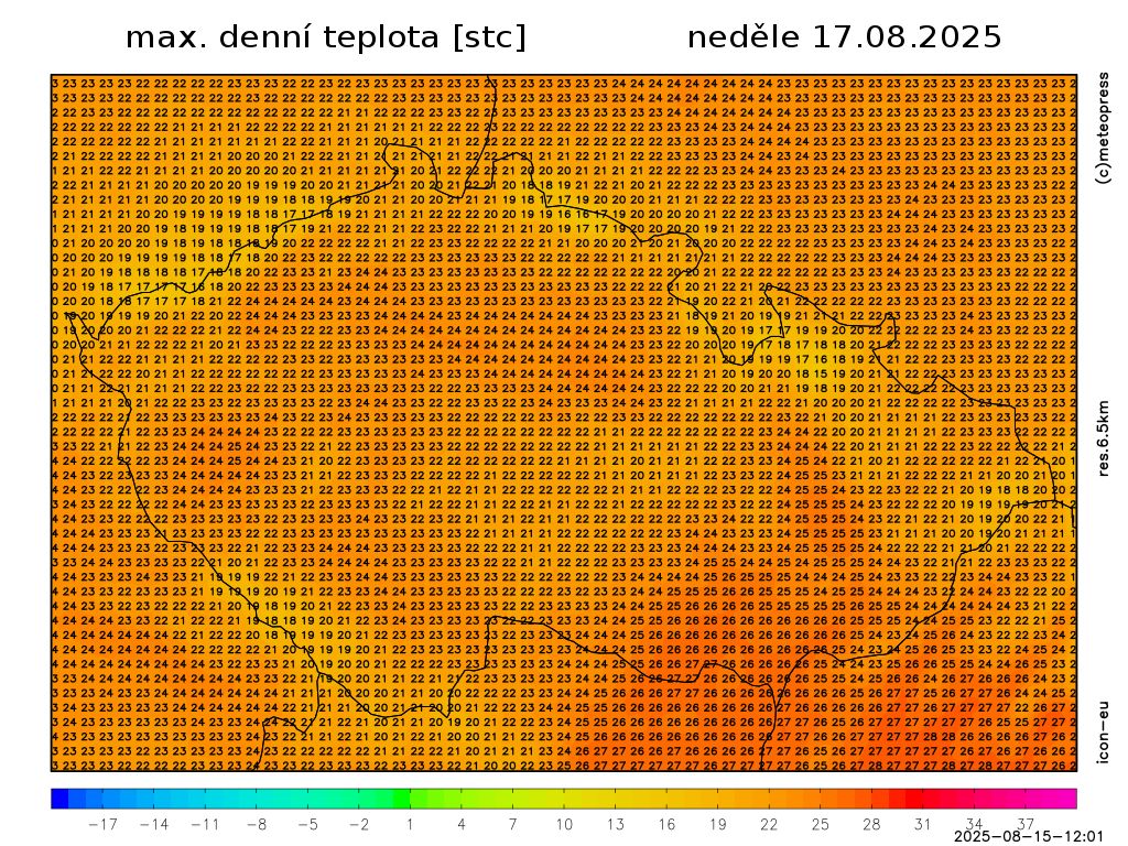 Nejvyšší denní teploty vystoupí na 22 až 26 °C, teplota v 1000 m na horách bude kolem 18 °C. Foukat bude slabý až mírný severozápadní vítr.