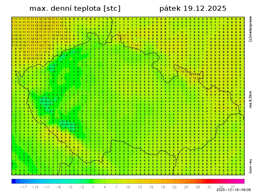 Nejvyšší denní teploty 0 až 6 °C, při slunečném počasí až 8 °C. Teplota v 1000 m na horách kolem 6 °C. Foukat bude slabý až mírný vítr jižních směrů.