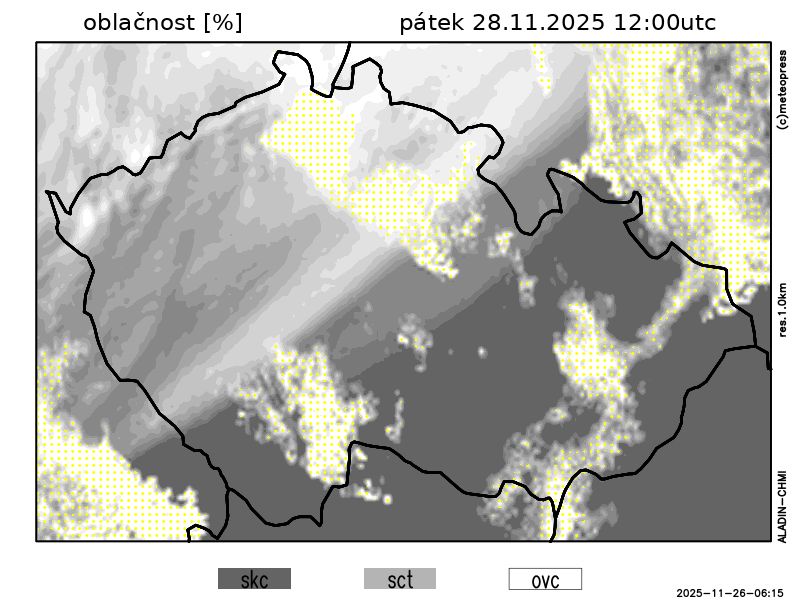 V pátek bude oblačno až polojasno. Ráno a dopoledne místy mlhy nebo nízká oblačnost.