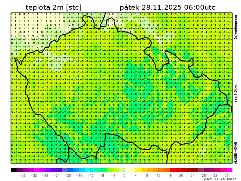Ranní teploty poklesnou na -1 až -5 °C, při vyjasnění až -9 °C.