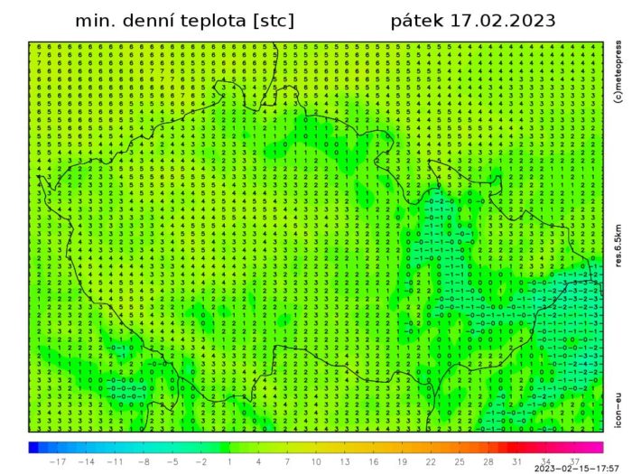 Ranní teploty 5 až 1 °C, na východě až -1 °C.