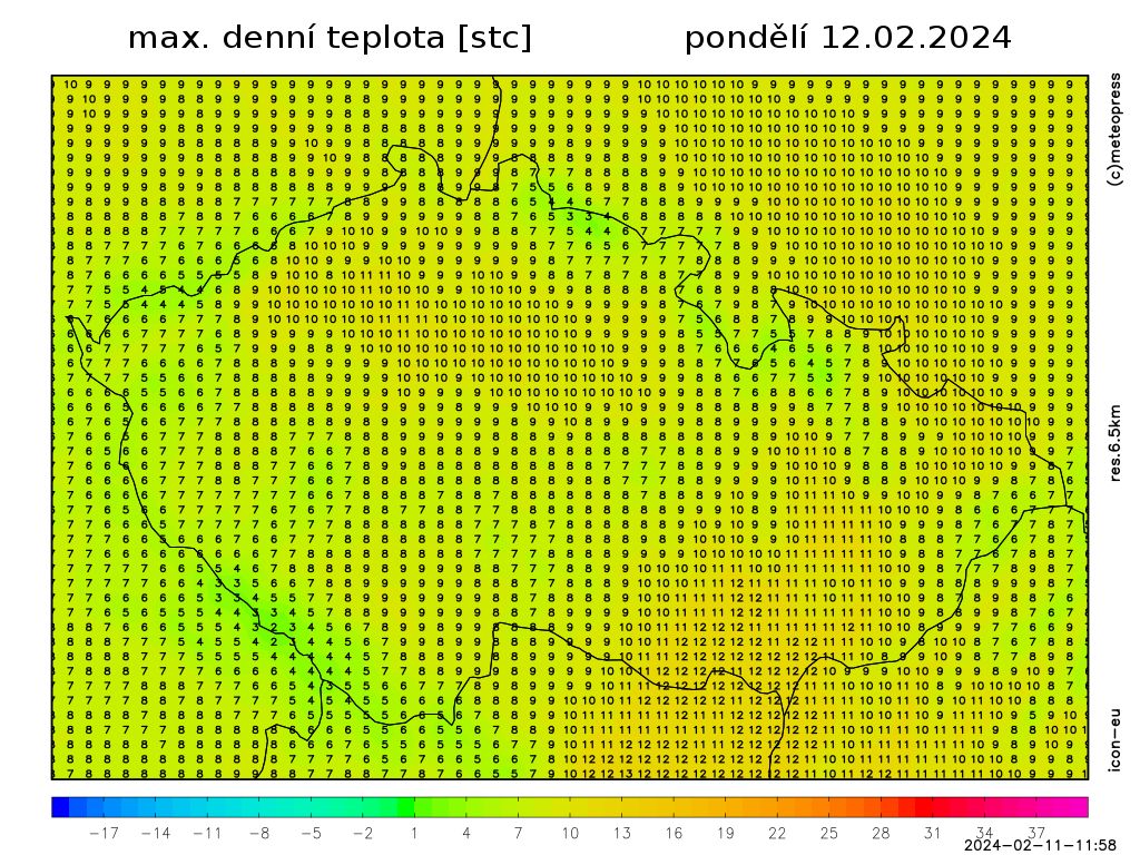 Nejvyšší denní teploty 7 až 11 °C. Teplota v 1000 m na horách kolem 2 °C. Foukat bude slabý až mírný vítr západních směrů.
