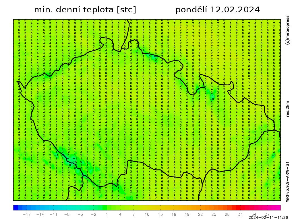 Nejvyšší denní teploty 7 až 11 °C. Teplota v 1000 m na horách kolem 2 °C. Foukat bude slabý až mírný vítr západních směrů.