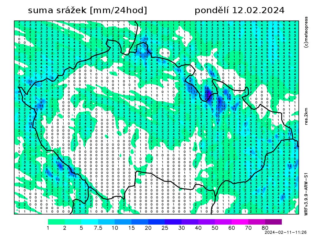 Bude převážně oblačno, ojediněle, odpoledne a večer místy přeháňky. Nad 1000 m sněžení.