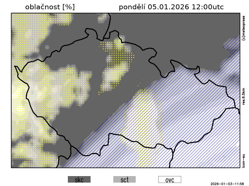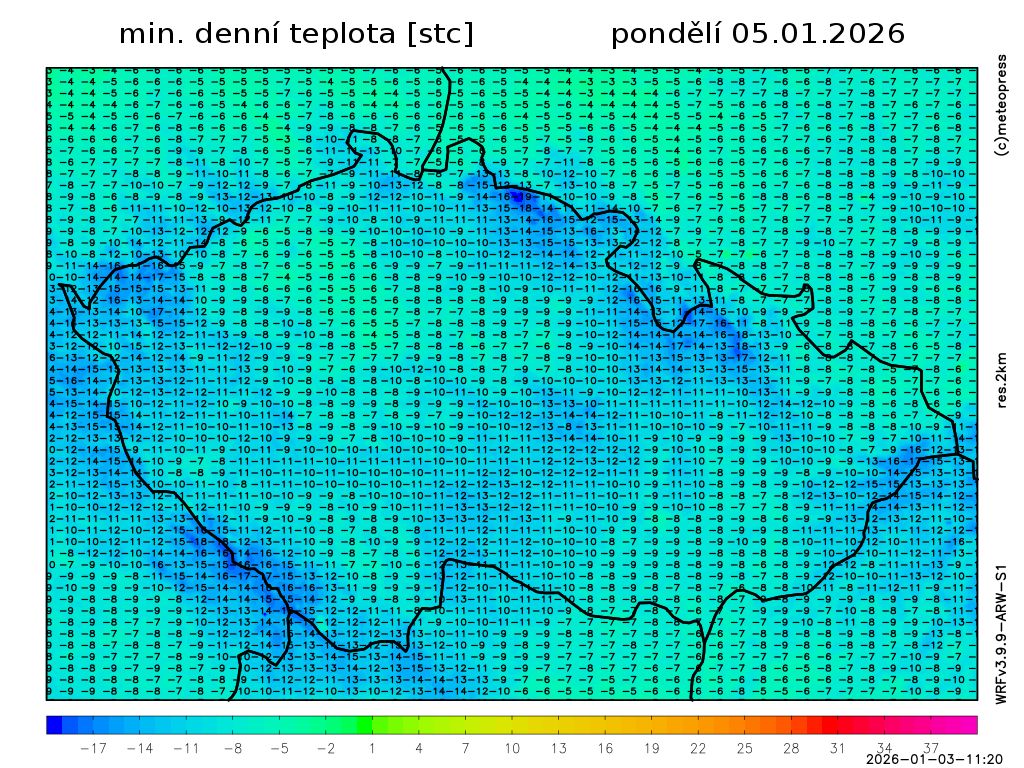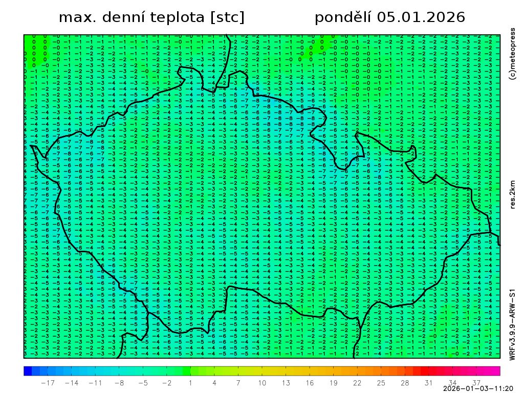 Nejvyšší denní teploty vystoupí na -5 až -1 °C. Teplota v 1000 m na horách kolem -8 °C. Foukat bude slabý vítr jižních směrů.