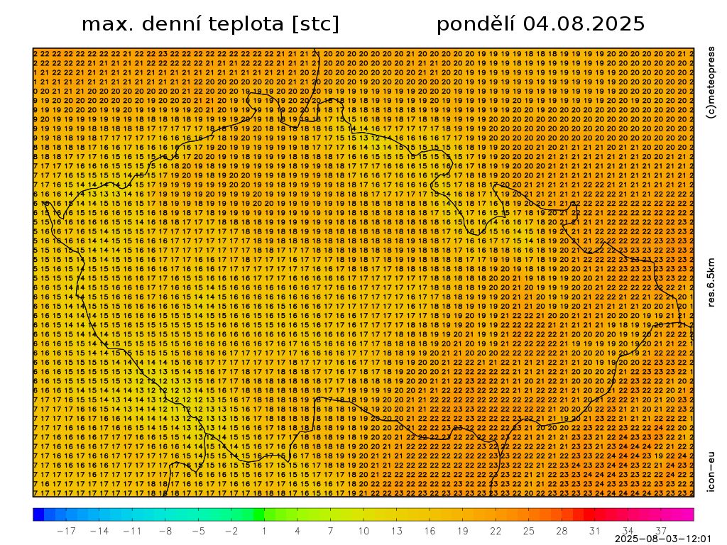 Nejvyšší denní teploty 16 až 21 °C, na východě až 23 °C. Teplota v 1000 m na horách kolem 14 °C. Foukat bude mírný vítr západních směrů.