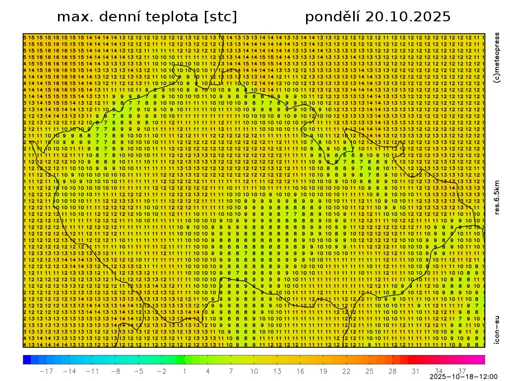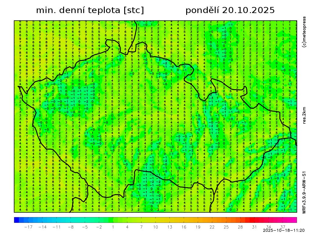 Ranní teploty poklesnou na 5 až 1 °C, v údolích při bezvětří naměříme ojediněle i méně.