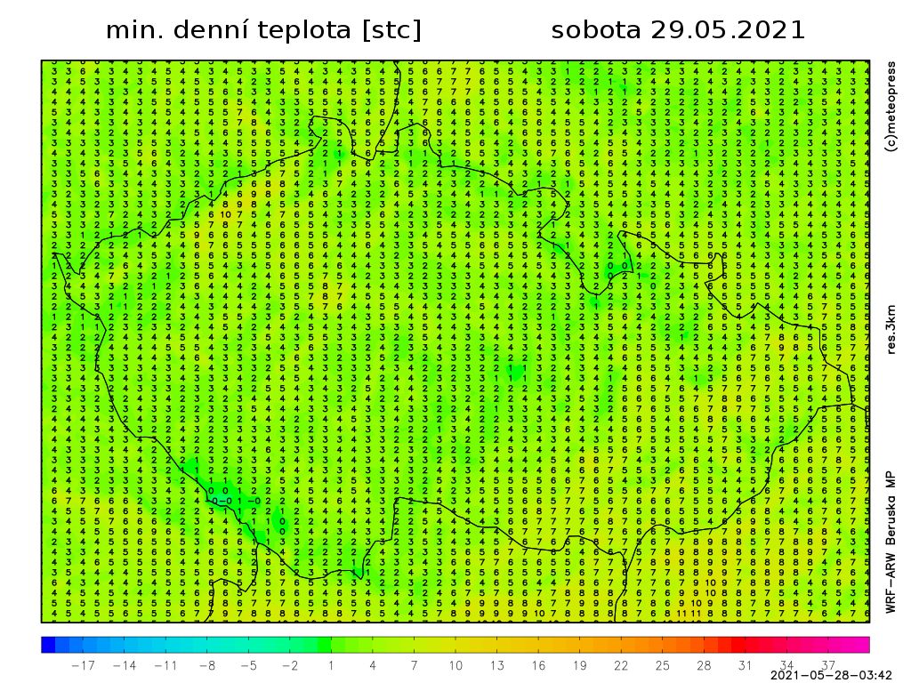 Noční teploty se budou pohybovat mezi 8 a 4 °C, ve vyšších polohách ale budou klesat až na hodnoty kolem 0 °C.