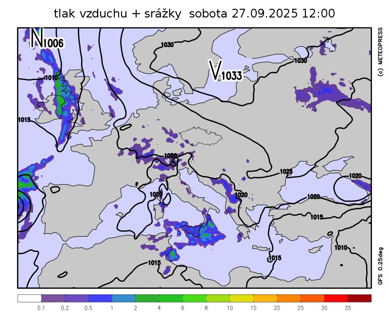 Počasí ve střední Evropě ovlivní nevýrazné tlakové pole.