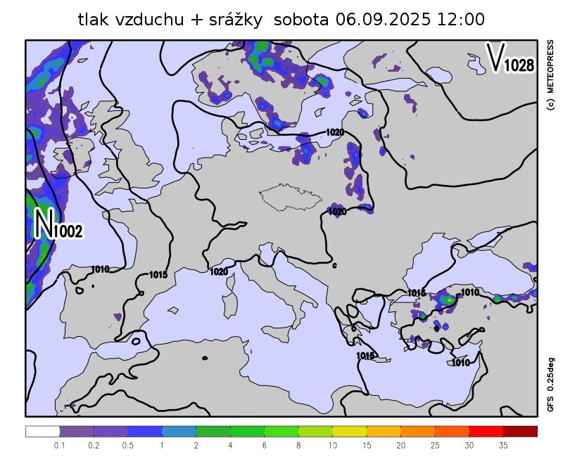 Počasí ve střední Evropě ovlivní oblast vyššího tlaku vzduchu.