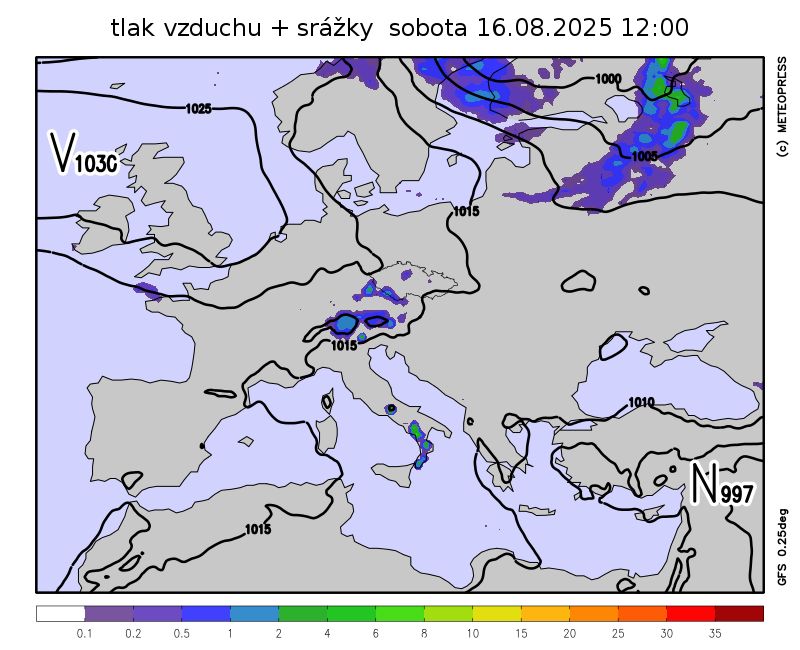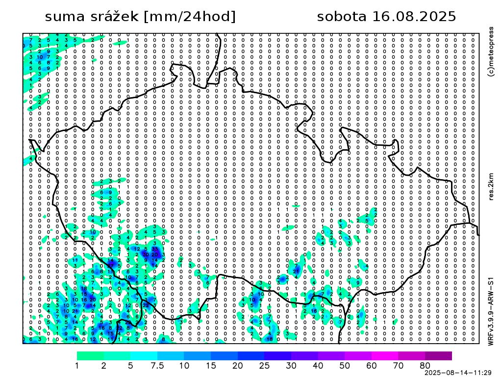 V sobotu bude polojasno až oblačno, místy přeháňky a bouřky. Večer ustávání srážek a ubývání oblačnosti.