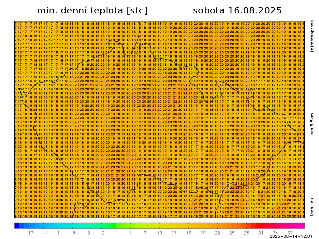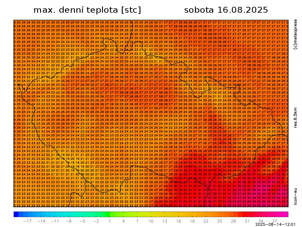 Nejvyšší denní teploty vystoupí 24 až 28 °C, na východě naměříme až 32 °C. Teplota v 1000 m kolem 20 °C, na východě kolem 24 °C. Foukat bude mírný severozápadní vítr.