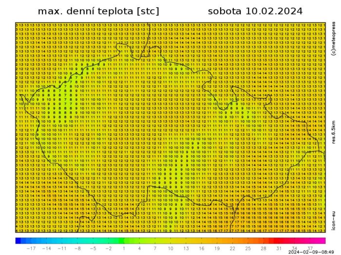 Kolem tlakové níže nad severozápadní Evropou bude do střední Evropy proudit teplý vzduch od jihu. Teploty budou připomínat spíše jaro a k tomu se přechodně protrhá oblačnost. Na jihovýchodě teploty překročí i 15 °C. O něco chladněji bude v místech s ojedinělou nízkou oblačností, zejména v severozápadních Čechách.