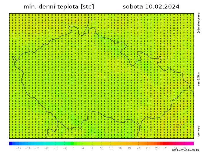 Nejvyšší denní teploty 11 až 16 °C, na severozápadě ojediněle kolem 9 °C. Teplota v 1000 m na horách kolem 7 °C, na Šumavě až 11 °C. Foukat bude slabý až mírný jihovýchodní vítr.