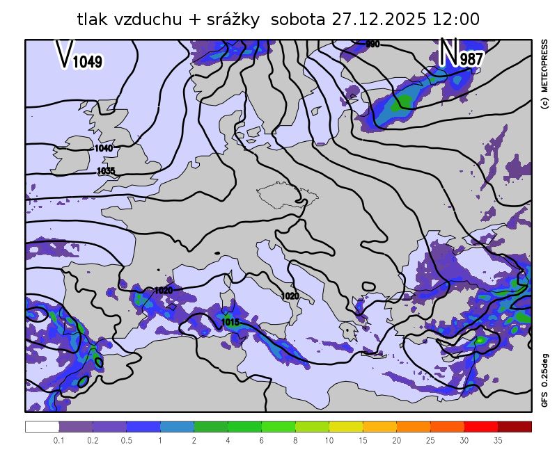 Mezi tlakovou výší nad Britskými ostrovy a tlakovou níží nad východní Evropou bude do střední Evropy proudit chladný vzduch od severu.