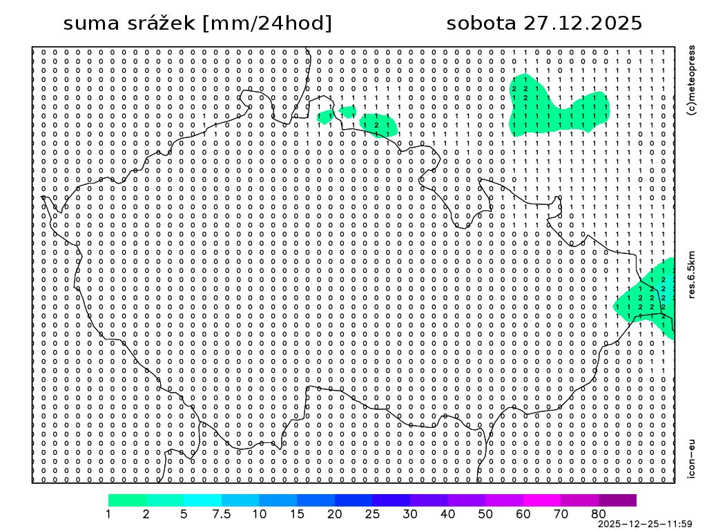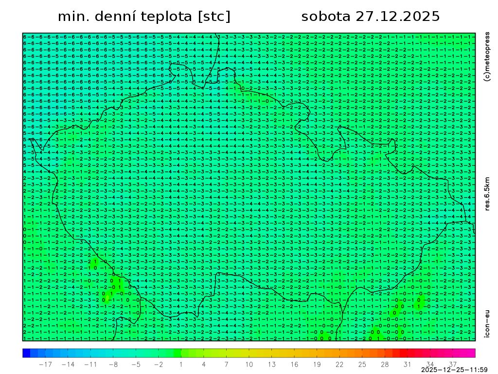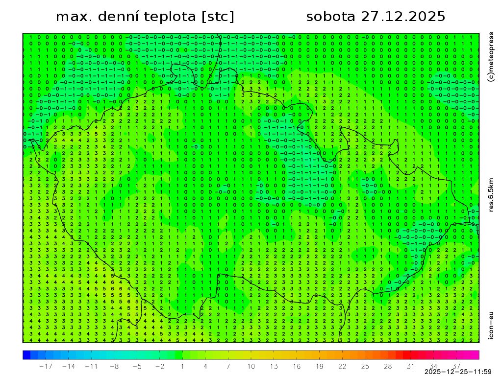 Nejvyšší denní teploty vystoupí na -1 až 3 °C. Teplota v 1000 m na horách bude kolem 1 °C. Foukat bude slabý severozápadní vítr.