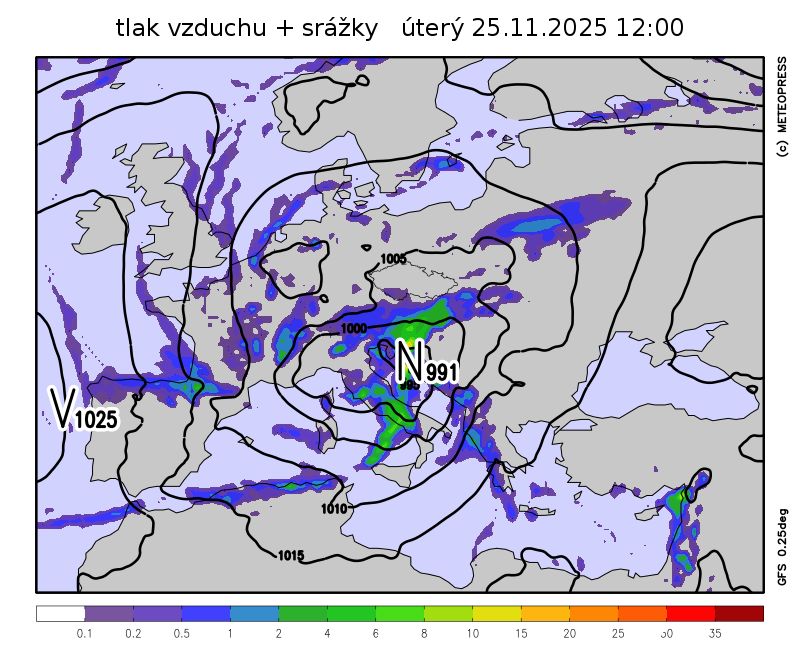 Počasí ve střední Evropě bude ovlivňovat tlaková níže.