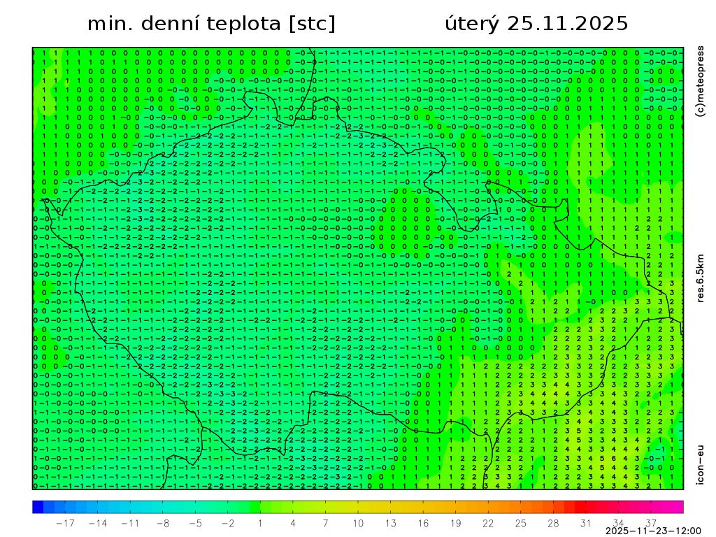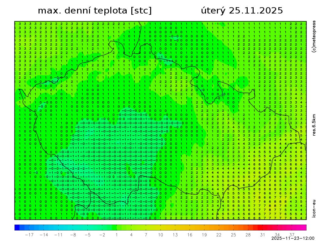 Nejvyšší denní teploty vystoupí na 1 až 6 °C.
