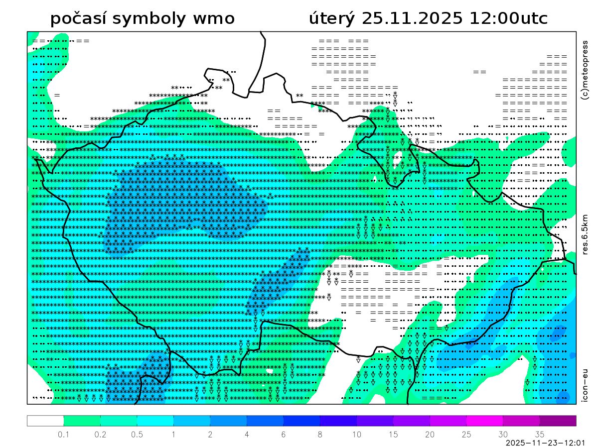 V úterý bude oblačno až zataženo se sněžením, v nížinách i déšť se sněhem.
