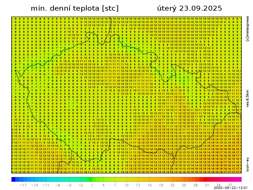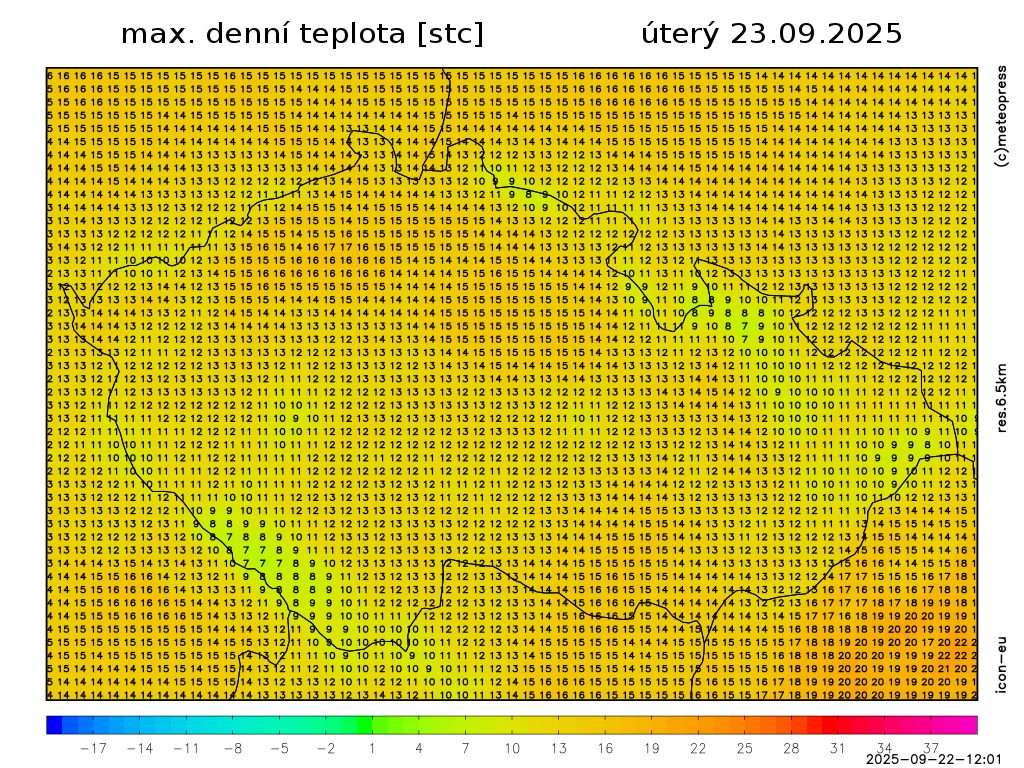 Nejvyšší denní teploty 11 až 16 °C. Teplota v 1000 m na horách kolem Teplota v 1000 m na horách kolem 8 °C. Foukat bude slabý až mírný severovýchodní vítr.