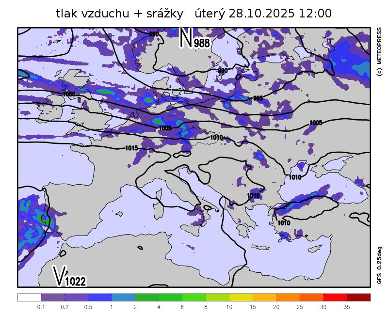Bude oblačno až zataženo, od západu déšť nebo přeháňky, zpočátku nad 900 m sněžení.
