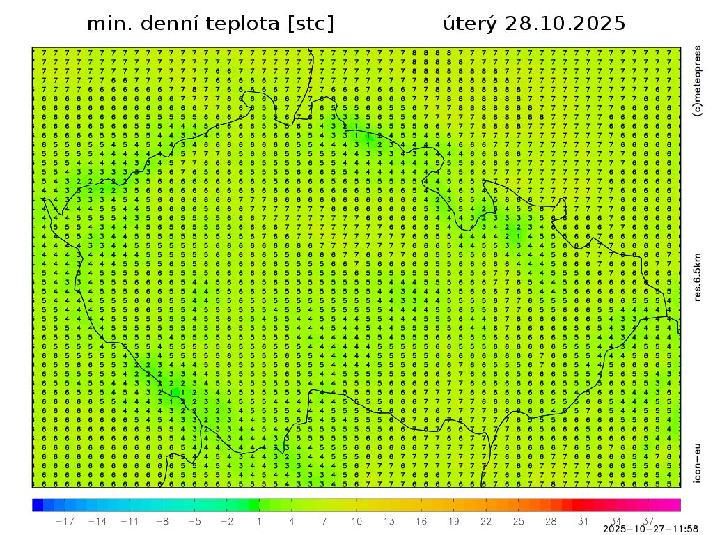 Nejvyšší denní teploty vystoupí na 7 až 12 °C. Foukat bude mírný vítr západních směrů.