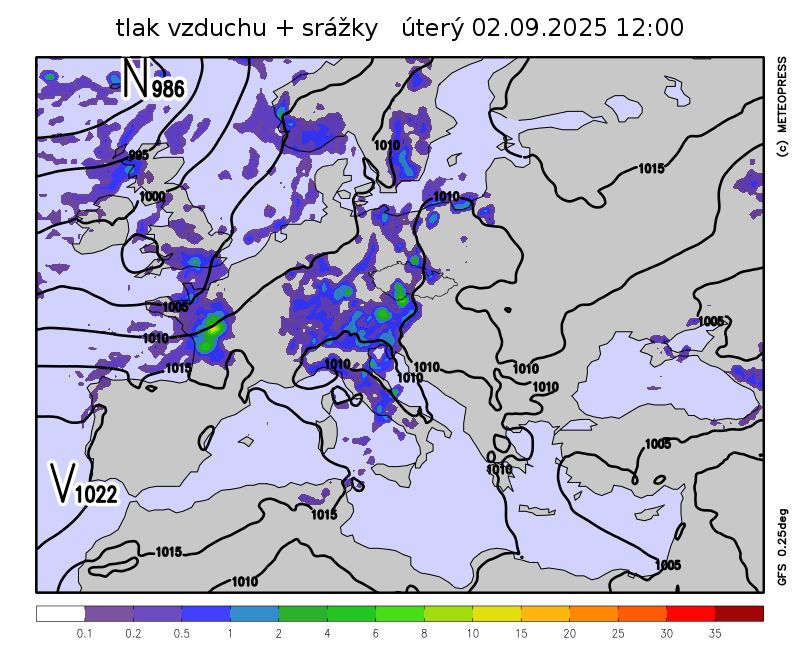 V úterý bude oblačno s přeháňkami nebo deštěm. Místy bouřky.